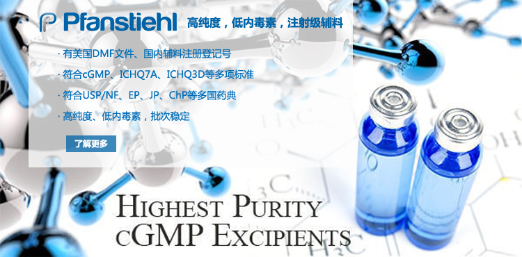 “熱烈祝賀Pfanstiehl的注射級甘氨酸Glycine(G-140)喜獲CDE登記號F20250000403, 這是Pfanstiehl產品獲得的第18個CDE登記號!”甘氨酸在醫藥輔料制劑中應用廣泛,, 可作為緩沖劑,增溶劑,穩定劑等,具有諸多優勢。Pfanstiehl秉承一貫高品質理念,為滿足全球生物制藥行業對于高品質甘氨酸的需求,隆重推出的注射級甘氨酸Glycine (G-140), 具有超高純度,超低內毒素,超低金屬殘留的特點,單獨檢測29種金屬離子,并且新增DNA,RNA,DNA酶,RNA酶和脂肪酶,亞硝酸鹽等多項質量指標的檢測,符合多國藥典規定(USP, EP, BP, JPE, ChP),可用于生物治療性藥物和疫苗的生產。產品信息:· 產品名稱:Glycine, High Purity, Low Endotoxin, Low Metals, USP, EP, BP, JPE, ChP (G-140)· 中文名稱:甘氨酸· 分子式:C2H5NO2· 分子量:75.07 g / mol· CAS號:56-40-6· 產品貨號:G-140產品特點: · 超高純度,超低內毒素,超低微生物含量,超低金屬雜質殘留· 質量指標新增DNA,RNA,DNA酶,RNA酶,脂肪酶和亞硝酸鹽檢測· 符合多國藥典:USP, EP, BP, JPE, ChP· 符合ICH Q3D標準· 符合GMP標準· 已獲DMF和CDE登記號 產品應用:· 緩沖劑· 穩定劑· 增溶劑如果您對Pfanstiehl注射級別Glycine G-140感興趣,歡迎聯系Pfanstiehl 中國區代理商北京西美杰科技有限公司獲得如下詳細的產品概況說明文件和測試樣品。Pfanstiehl Inc.最新產品系列如下,歡迎聯系北京西美杰科技有限公司獲取100g裝免費樣品。北京西美杰科技有限公司為Pfanstiehl中國代理,為客戶提供完善的技術支持與售后服務。歡迎撥打西美杰客服電話400-050-4006或者登陸網站www_xmjsci_com.fssmjj.com了解更多信息。 更多>